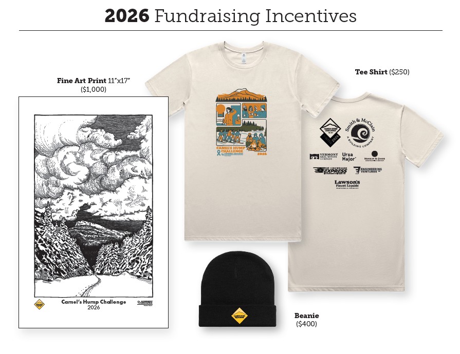 Share your support for our cause and participation in the 2026 Camel's Hump Challenge with your friends, family and colleagues and ask them to make a donation to your page.