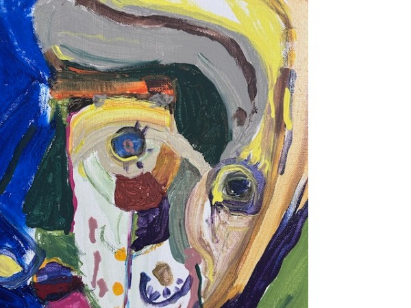 What happened next surprised all of us. Brad didn’t just fill in the spaces - He transformed Donna’s art into his own. The profile face became so abstract that he even turned it to face forward. Donna was so tickled each time I showed her what Brad had done. She would draw another canvas and say, I can’t wait to see what he does with this one.